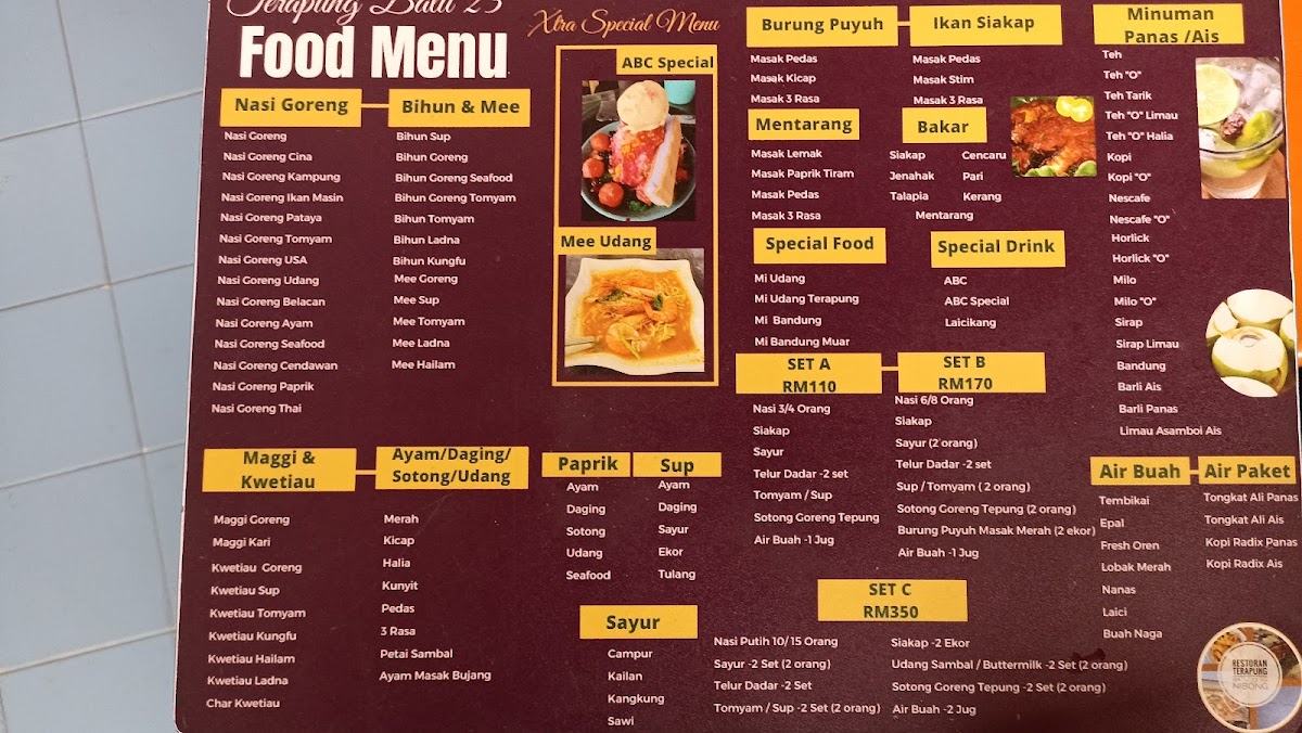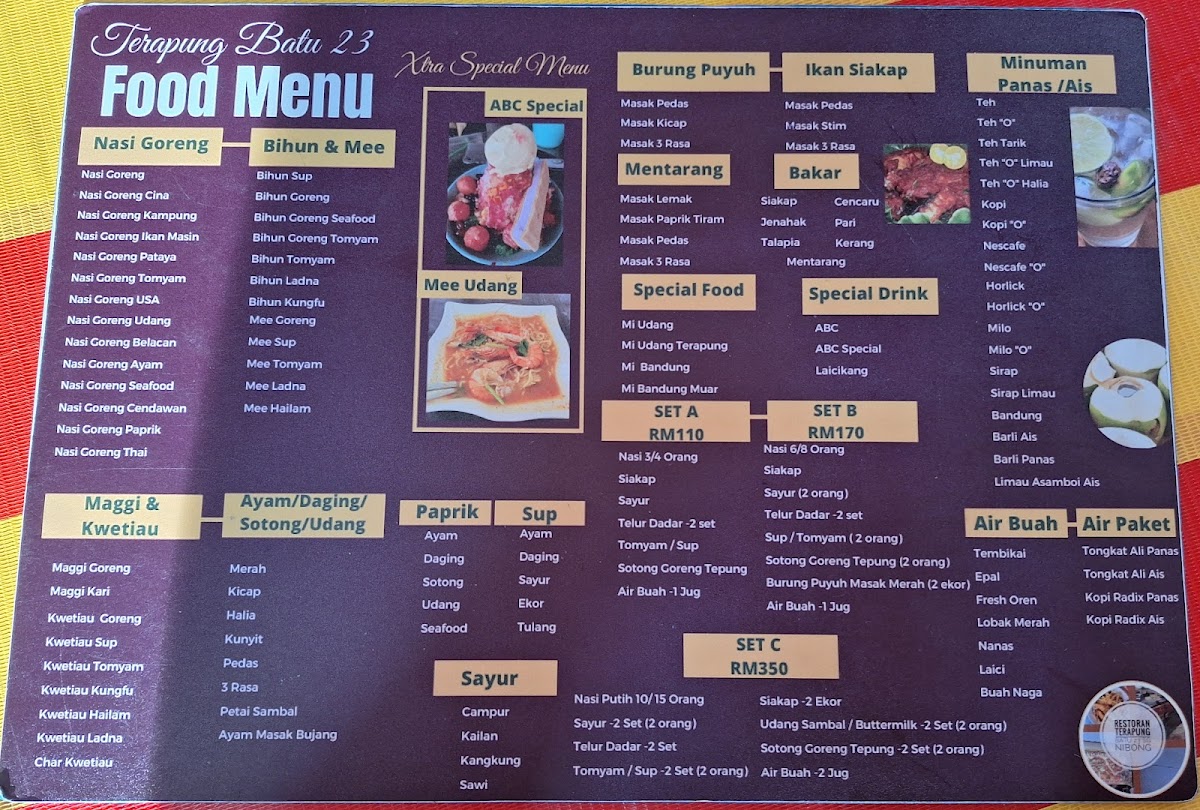 Restoran Terapong Pantai Batu 23 Sungai Nibong Menu